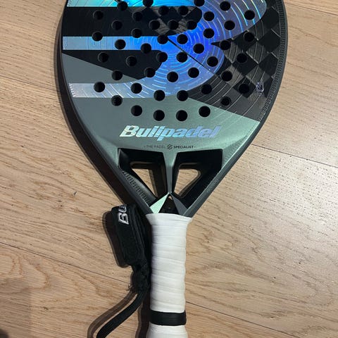 Bullpadel Hack 04 padelracket i grønn farge. Racketen har rund form med perforert trefflate og strukturert overflate. Den har sort grep og ramme med grønn og hvit design på hodet. Egner seg til padelspill på ulike nivåer. Detaljer som vekt og balansepunkt er ikke oppgitt i annonsen.