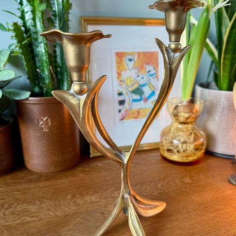2 antikke piano lysestaker i messing - art deco / art nouveau stil - bevegelige fra side til side