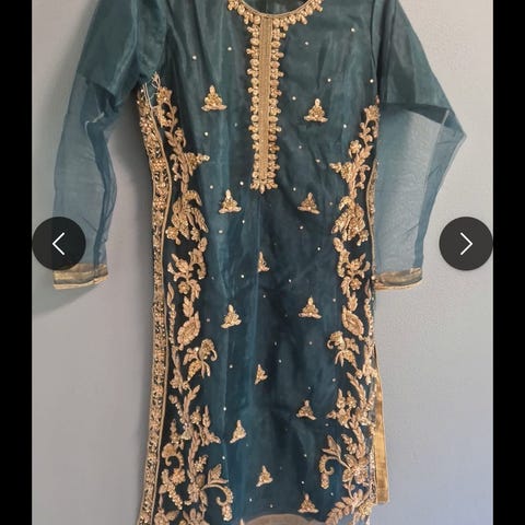 Lehenga choli str M selges, men den har mulighet til å strammes bak ved å knyte. Derfor kan den også passe small