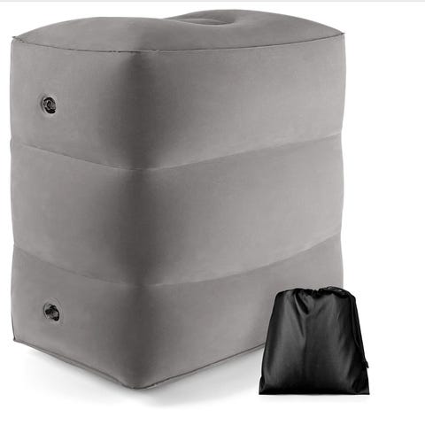 Merk! De fleste internasjonale flyselskaper tillater oppblåsbare fotstøtter, men sjekk med flyselskapet ditt hva som gjelder for dem før du reiser.