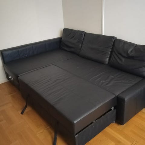 Selger en godt men pent brukt sove soffa med sjesolong.God plass til oppbevaring under sjesolongen