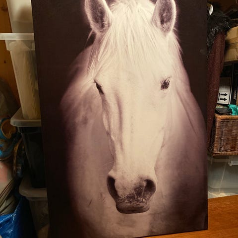 Vakkert lerrets bilde, noen år gammelt, men er i god stand
