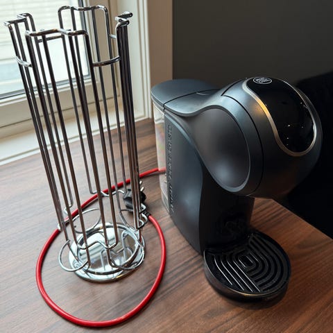 Dolce Gusto Genio S kapselkaffemaskin. Automatisk kapselmaskin for tilberedning av ulike kaffedrikker som svart kaffe, latte og andre varianter ved bruk av Nescafé Dolce Gusto-kapsler. Maskinen har justerbar mengde vann, trykksystem for espressobasert kaffe og dryppbrett for kopp. Egnet for bruk hjemme på kjøkken eller kontor for enkel tilberedning av enkel porsjon kaffe om gangen.
