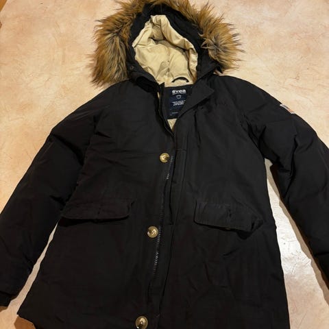 Selger en klassisk og veldig varm Svea Miss Smith Jacket i svart, størrelse S. Jakken er pent brukt og har den populære figursydde/innsvingede passformen.