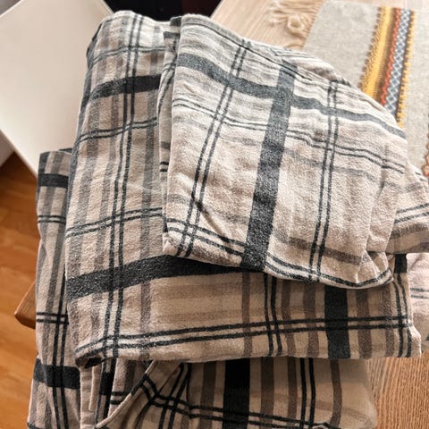 Nytt ubrukt sengetøy i rutet mørkeblått. 250 kr for begge