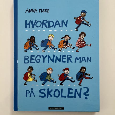 Anna Fiske Hvordan begynner man på skolen? barnebok. Illustrert bok for barn om det å starte på skolen, med fargerike tegninger og enkel tekst. Innbundet utgave på norsk, egnet for førskolebarn og barn i småskolealder som skal begynne eller har begynt på skolen.