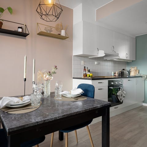 Uttrekkbart spisebord som er laget av treverk og har et minimalistisk design. Når det ikke er uttrekt har bordet en kvadratisk form (90x90) og er meget plasseffektivt. Det kan utvides ved å trekke ut to ekstra plater som er lagret under bordplaten. Dette gjør det enkelt å øke størrelsen på bordet når det er flere gjester eller når det er behov for mer plass.