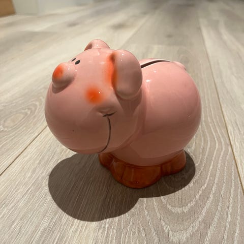 Retro fra 80-tallet sparebøsse gris rød keramikk