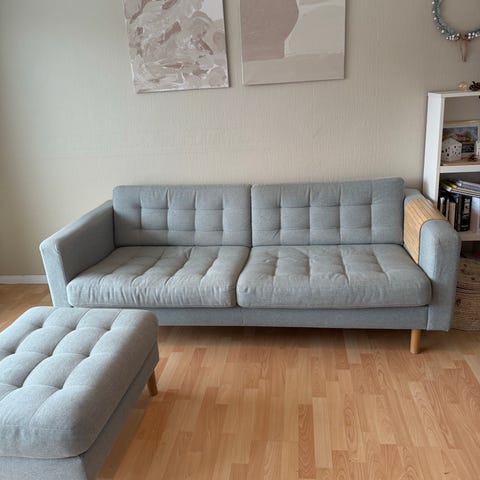 Selger min nesten 1 år gamle ektorp sofa pga flytting men nesten ikke brukt siste 6 mnd. Kjøpte den i feb ifjor. Helt herlig å sitte i. Det er dun i sitteputene. Kan hentes etter 15 mars. Trekkene blir vasket før overlevering. Pris kan diskuteres ved hurtig avgjørelse