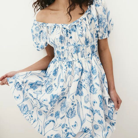 Hale Bob sommerkjole for dame i størrelse S. Kjolen er hvit i lin med blå broderte detaljer på ermer og nederkant. Modellen har vide ermer med strikk ved håndleddene og knappelukking foran. Passer somsommer kjole kostet ny på villoid 5500kr