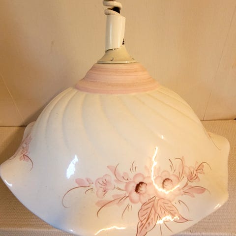 Vintage taklampe i glass. 25cm diameter, 30cm høy. Hentes på Kongsberg eller kan sendes.