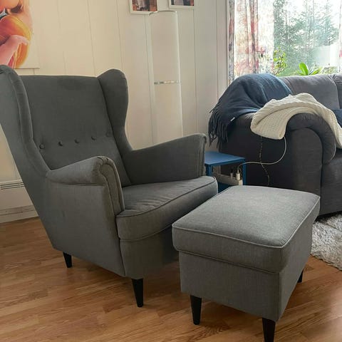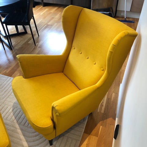 NY PRIS: 4.790,- (https://www.ikea.com/no/no/p/strandmon-stol-og-fotskammel-skiftebo-gul-s59483906/#content)