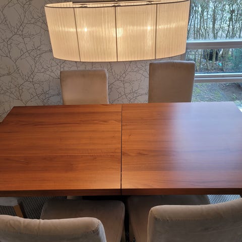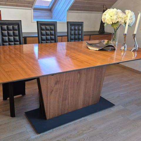 Veldig fint spisebord med 6 stoler. 2 integrerte klaffer