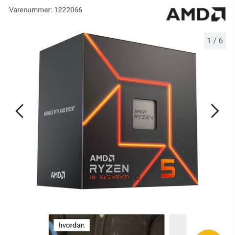 AMD 7600x, selges grunn av oppgradering. Ble kjøpt i august 2025. Funker som den skal, kun har vært undervoltet -30 pbo