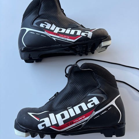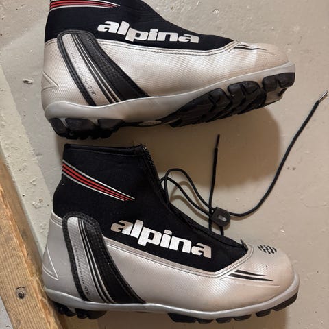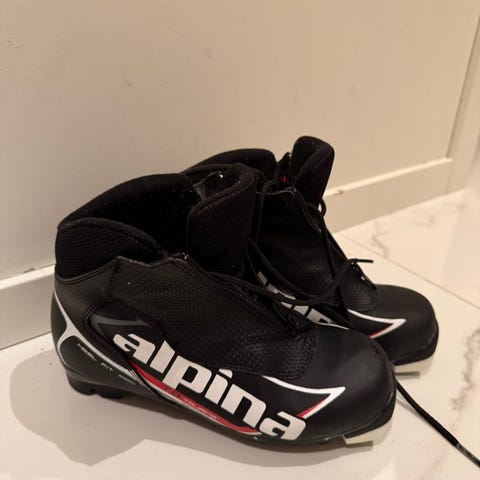 Alpina langrennsstøvler i svart farge. Støvlene har snøring med beskyttende glidelåsklaff over vristen. Sålen er tilpasset moderne langrennsbindinger. Overdelen er i syntetisk materiale med trykket Alpina-logo på sidene. Passer til klassisk langrenn og turbruk. Størrelse 38