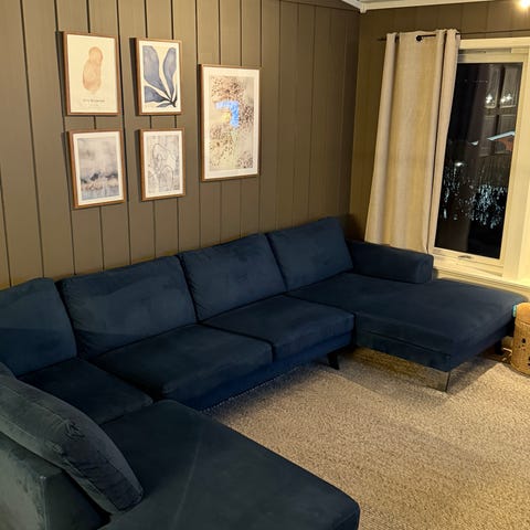 Kivik sofa kjøpt ny februar 2023, med tilhørende puff med oppbevaring. Nypris på denne sofaen er 13 285kr.