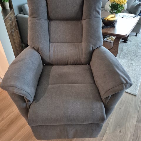Motorisert regulering av rygg, fothviler og løft der disse funksjoner styres med en håndkontroll. Inkludert armbeskyttere i tekstil