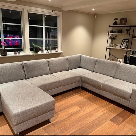 Hjørnesofa selges, hentes i Lillestrøm sentrum. Den kan demonteres slik at man får den i to deler (for å frakte den).