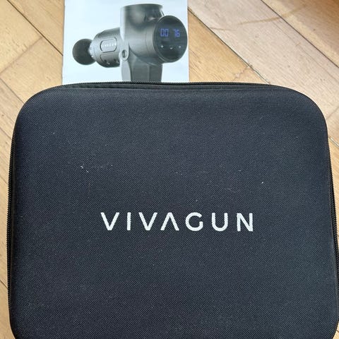 Settet inkluderer massasjepistol, ulike massasjehoder og oppbevaringsetui som gjør det enkelt å ta med og oppbevare utstyret samlet.