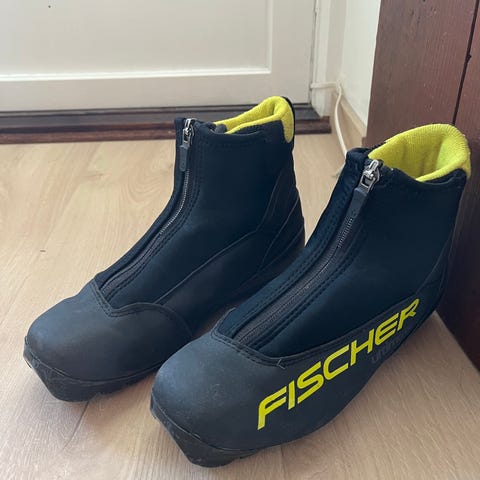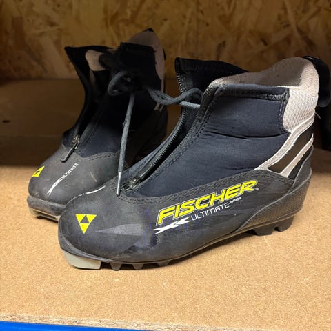 AI: Fischer XC Pro langrennsstøvler i størrelse EU 45. Støvlene er svarte med snøring og glidelås med overtrekk som beskytter mot snø og fukt. Sålen er tilpasset klassisk langrenn med standard bindingssystem (NNN/Turnamic-type basert på utseende). Passer til bruk i preparerte langrennsløyper. Overdelen er i syntetisk materiale med forsterkninger rundt hæl og tå for bedre støtte og slitestyrke.