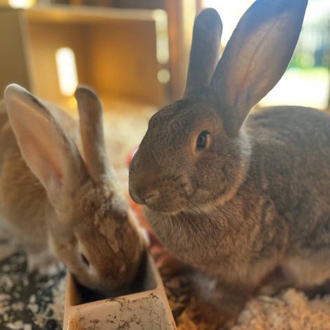 Jeg (My) er en sosial og veldig kontaktsøkende kanin, som liker godt litt kos og masse godbiter. Min søster (sprett) er litt mer beskjeden og trenger litt mer tid til å komme ut av skallet sitt før du virkelig får møtt henne. Hun er også veldig glad i godbiter, så d kan hende det blir litt søsken krangling når vi ikke ser det er to godbiter i hånden din;)
