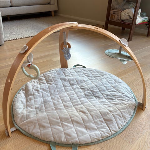 Selger denne fine babygymnen. Mangler puta og den ene leken (se siste bilde).