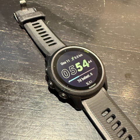Garmin Forerunner 745 sportsklokke i svart. Klokken har rund urskive med digitalt display og silikonreim med klassisk spenne. Modellen er laget for trening og hverdagsbruk, med funksjoner som aktivitetsmåling, HRV, sleepscore og mye mer. Passer til både menn og kvinner, og kan brukes til ulike typer løpe- og treningsøkter samt daglig bruk som armbåndsur. Dette er en solid klokke som tåler en trøkk med samtidig som den har alle funksjonene du trenger i en klokke.