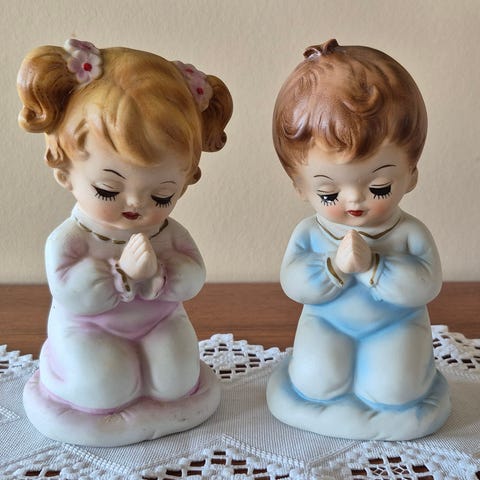 to søte pyntefigurer fra 50 tallet. keramikk. merke Lipper and mann.