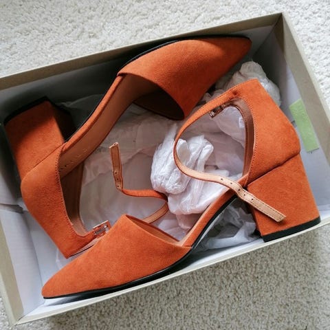 Semskede, gule hæler fra Bianco som dessverre bare blir stående siden jeg har et annet par som ligner som blir brukt mer. Str. 38. Aldri brukt.
