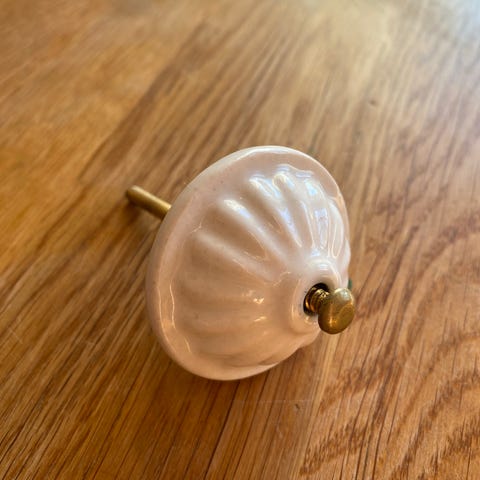 Rosa keramiske knotter i «rose-design». Jeg har 14 knotter, og de selges for 49 kr/stk.