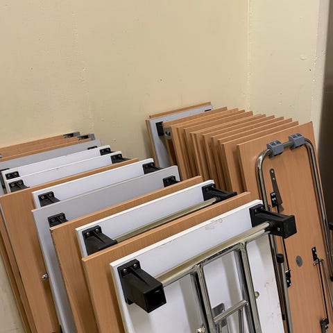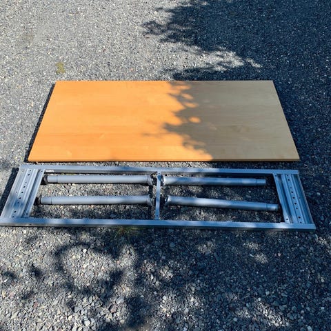 Kontorbord, skrivepult gies bort ved henting. Dette er opprinnelig en hev/ senk pult men mangler motor og kabling. Kan være fin å bruke også uten hev/ senk funksjonen. Du kan velge et bord eller alle 5, men må hente selv i Nydalen.