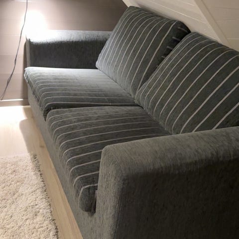 Sovesofa som er enkel å slå ned. Kul farge, men selges billig da den er en del solbleiket. Må hentes i Vestfjordveien