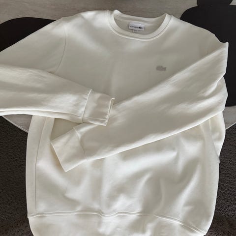 Langermet hvit Lacoste genser i strl. L selges, helt ny og uåpnet!