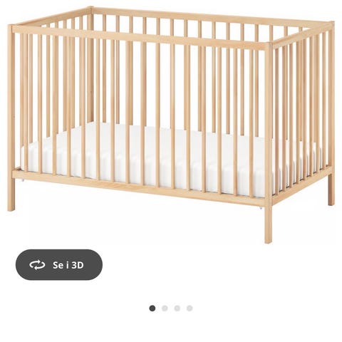 Selger en sprinkelseng fra IKEA av merket Sundvik. Den er demontert, og derfor har jeg kun bilde av sengen fra IKEA. Skruer og bruksanvisning følger med. Har også sprinkelsengbeskytter (Lenast fra IKEA) som kan følge med hvis ønskelig.