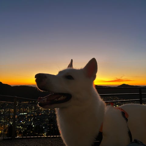 Mor er hjemmeværende så hundene med på turer og sofakos