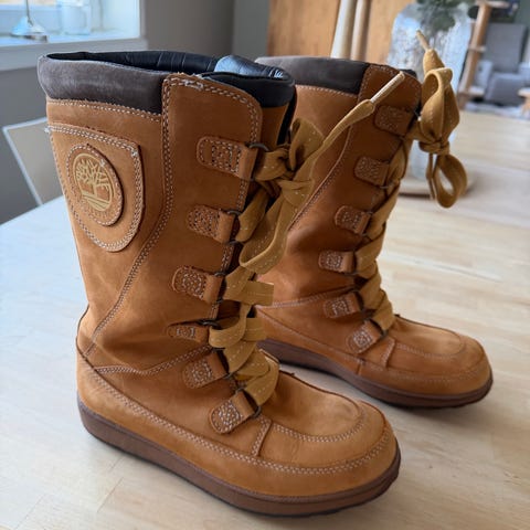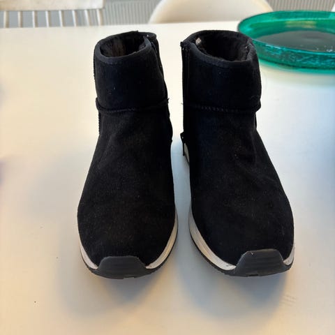 Samsøe Samsøe vinterstøvler i størrelse 40. Støvlene er i svart skinn med snøring foran og polstret ankelparti for ekstra komfort. Grovmønstret yttersåle i gummi gir godt grep på underlaget. Egner seg til bruk i kaldere vær og på glatt føre i hverdagen.
