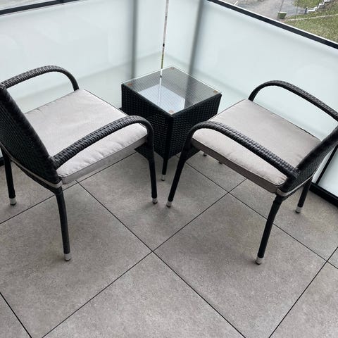 Pent brukt to stoler og en liten bord.