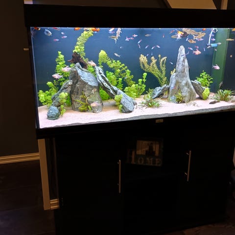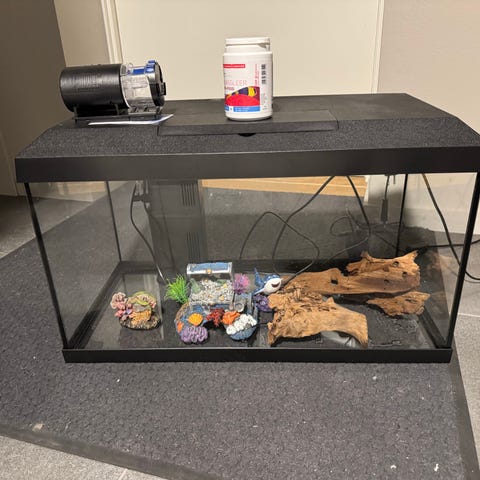 Fluval akvariumsett med pumpe, filter og tilbehør.