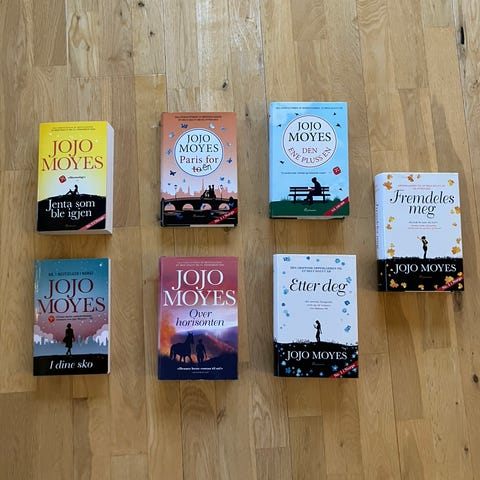 Selger Trilogien av Jojo Moyes. 40 kr per bok, men samlet for alle tre betaler du kun 100 kr.
