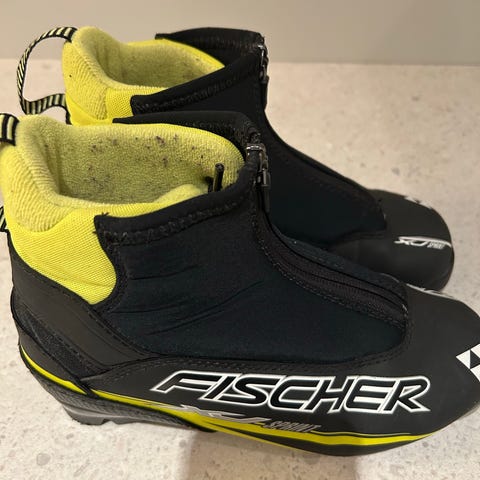 Fischer Sprint langrennsstøvler for barn i størrelse EU30. Støvlene er svarte med gule detaljer og har snøring med beskyttende glidelåsflapp over vristen. Overdelen er i syntetisk materiale med tekstilfôr på innsiden. Sålen er tilpasset NNN-bindinger og har grovt mønster for godt feste ved gange. Egnet til klassisk langrenn for barn.