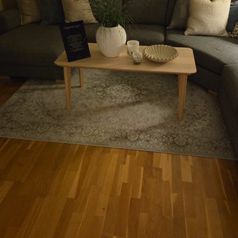 Selger teppe i størrelse 140x200cm. Kjøpt på Ellos Home.