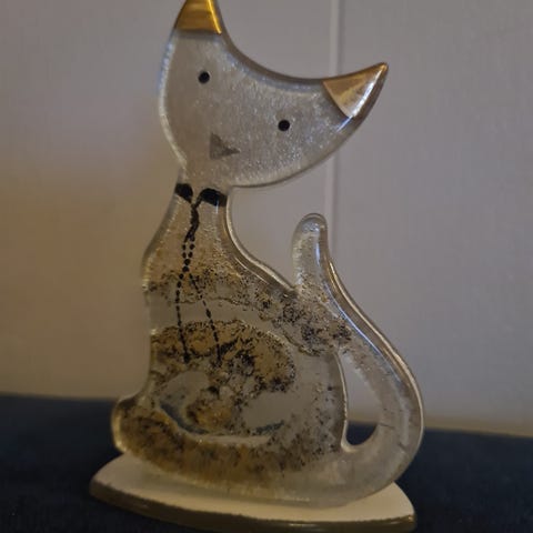Gammelt øyeskylleglass, koboltblått glass sannsynligvis av norsk (Hadeland eller Randsfjord) eller engelsk opprinnelse. Usikker alder, men sannsynligvis fra tidlig eller midten av 1900-tallet. Høyde 5 cm, diameter 4,2 cm.