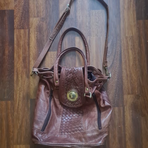 Selger en ubrukt skinnveske fra Liebeskind - Berlin. Vesken har en skulderstropp som man kan justere eller ta av. I tillegg kommer den med en liten veske som man kan feste oppi eller brukes alene. Den lille vesken har også en bånd man kan ta rundt armen, som gjør den fin å ta med på f.eks restaurant, med plass til mobil, leppestift osv.
