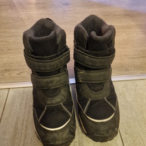 Skoene har høy skaft og er fôret på innsiden for ekstra varme. Yttermaterialet er i grønn og svart tekstil og syntetisk materiale. Sålen er kraftig for bedre grep på glatt underlag. Passer til bruk i kaldt vær og på vinterføre.