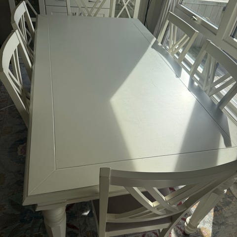 Bordet er i god brukt stand. Det finnes et lite merke/skade i overflaten (se bilde), men dette er kun kosmetisk og påvirker ikke funksjon eller stabilitet.