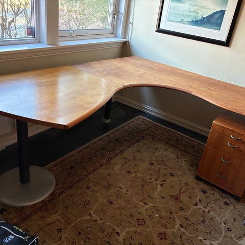 Gir bort en skuffeseksjon med 3 skuffer, ekstra stor plate på toppen og hjul. Plata på toppen er tiltenkt skriver og er limt fast. Dessverre så mangler nøkkelen. Seksjonen må hentes.