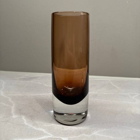 Søkeord: glassvase kunstglass brunt beige glass vase retro retrovase blomstervase.