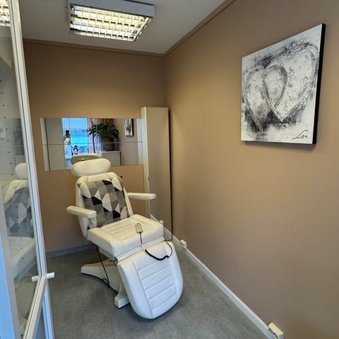 Stolen er i god stand og fungerer som den skal. Den passer perfekt til pedikyr og andre skjønnhetsbehandlinger. Praktisk og komfortabel både for kunde og behandler.
