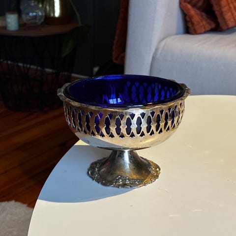 Vtg. isblå kunstglass skål