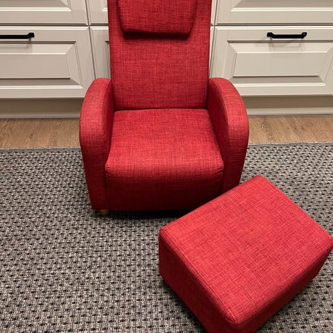 Kosestol med fotskammel. Nyrenset og klar til bruk.